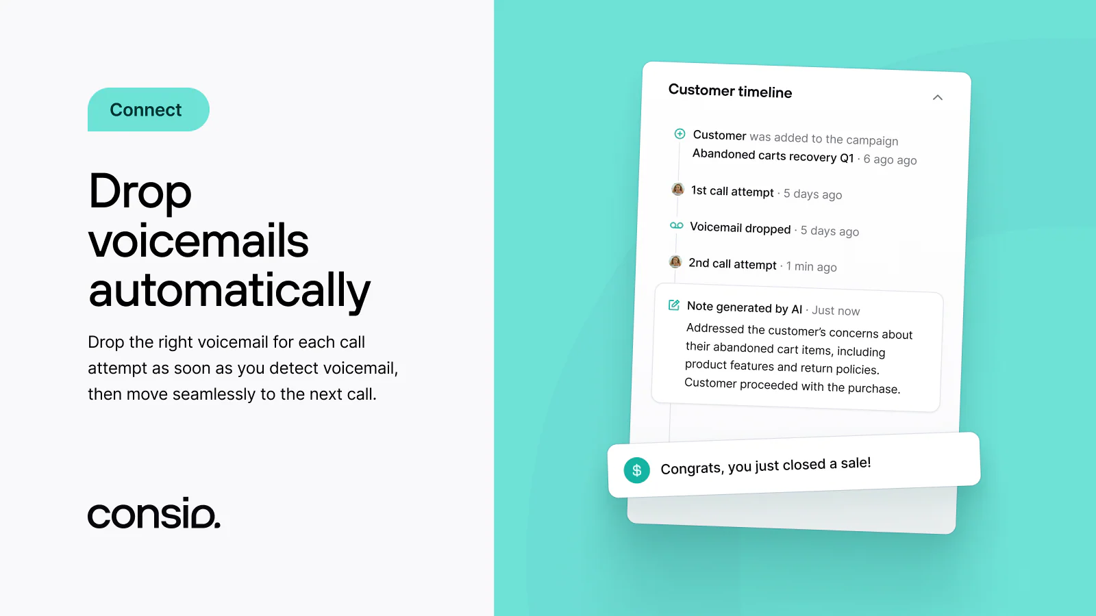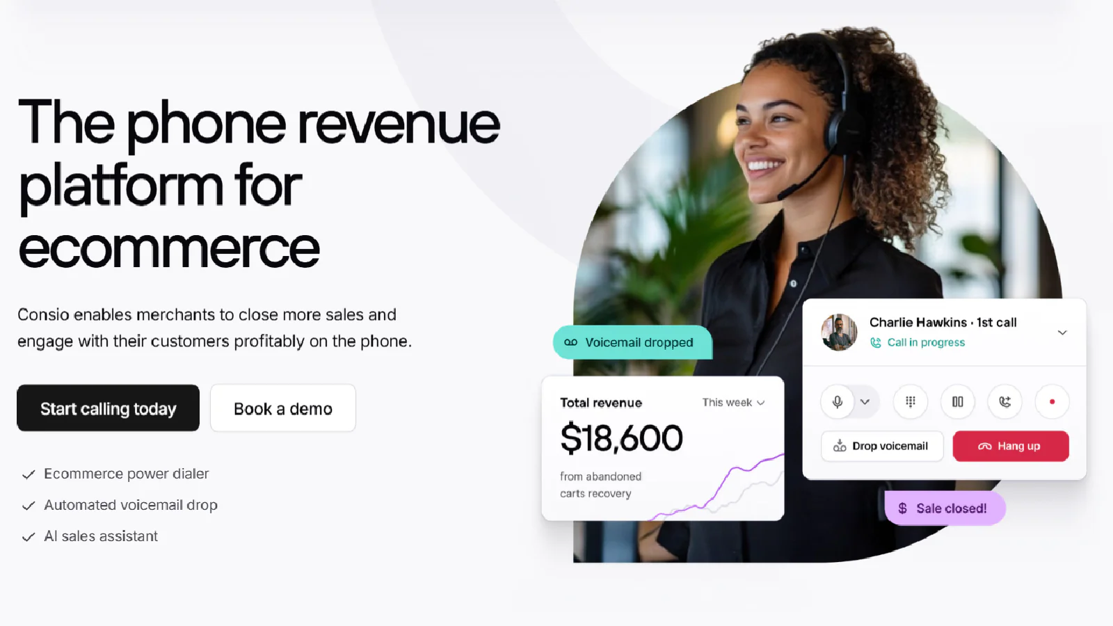 Consio AI helps ecommerce teams drive revenue through outbound phone campaigns by recovering abandoned carts, converting high-intent leads, and re-engaging VIP customers at scale.