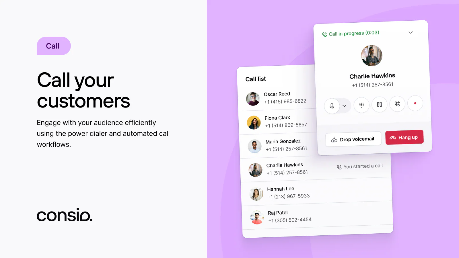 Consio's usage-based pricing makes it accessible for lean teams while remaining robust enough for fast-scaling operations. With unlimited agent seats, support for local and toll-free numbers, and easy credit-based expansion, Consio adapts as your strategy grows helping you unlock untapped revenue with every conversation.