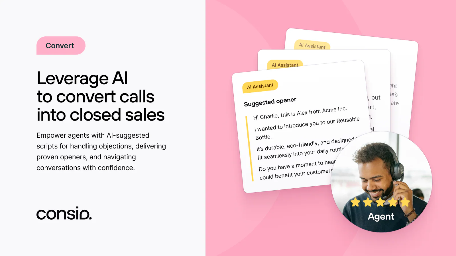 For outbound, Consio combines a power dialer with voicemail drops to launch targeted campaigns in minutes. Whether with your own reps or our partner agents, your sales take off with Consio. The real differentiator is an intelligent AI Agent that supports reps during and after calls generating talk tracks, recommending next-best actions, and providing post-call coaching. The result is smarter conversations, better timing, and higher conversion rates across the funnel.