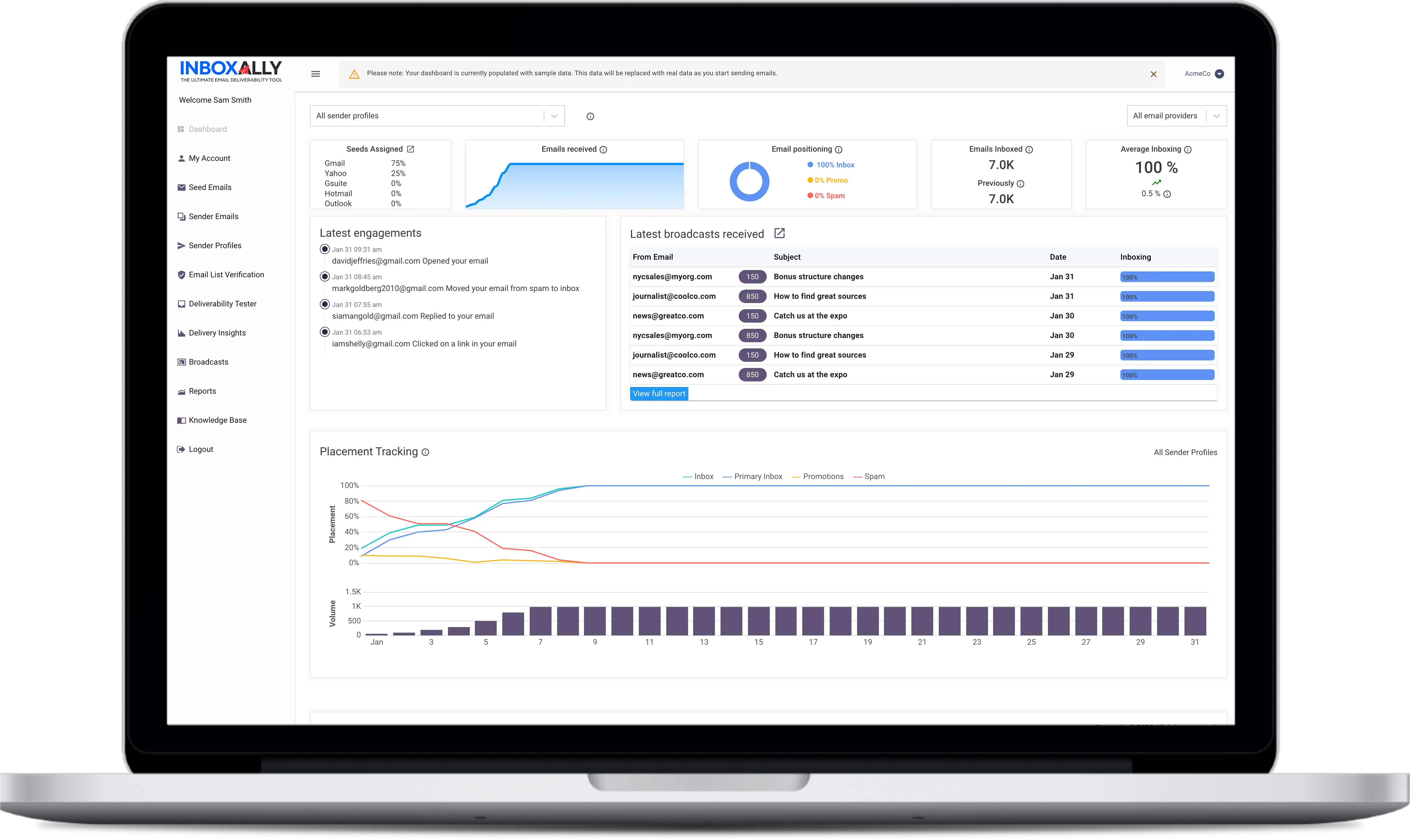 InboxAlly sends your emails to seed addresses that interact with your messages—opening, clicking, and reading—teaching inbox providers to trust your emails and prioritize them in recipients' inboxes.