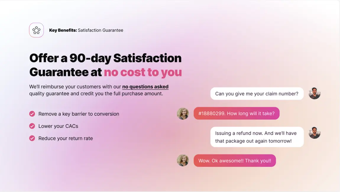 Onward empowers ecommerce brands to enhance every order with built-in value, offering services like shipping protection, cash-back incentives, satisfaction guarantees, and free returns. By turning the post-purchase experience into a premium upgrade, merchants increase profitability while giving shoppers greater peace of mind and incentives to come back.
