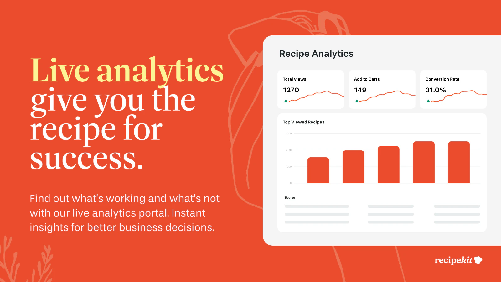 Yes, Recipe Kit includes detailed analytics that track views, engagement, and sales attribution, helping you understand which recipes perform best and refine your content strategy.